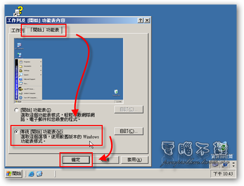 把開始功能表設定為傳統的顯示方式,設定Windows時會比較方便。