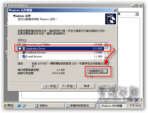 第八步 反白「Application Server」,按下「詳細資料」。