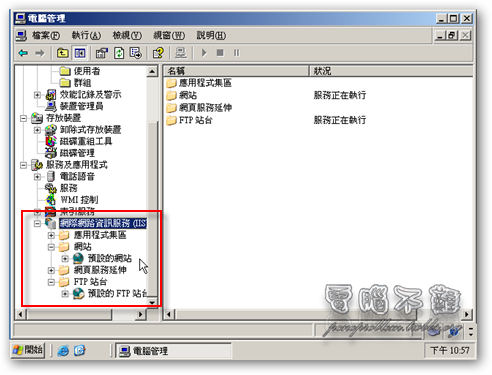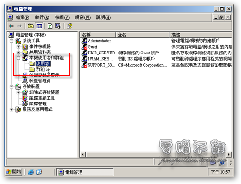 使用「電腦管理」對Windows Server 2003的群組權限以及IIS進行管理