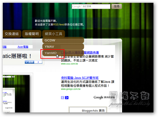 首先利用上面的連結連到本站yamMD的分頁,或是你可以在本站頁面上方的分頁選單找到「網頁小工具->yamMD」。