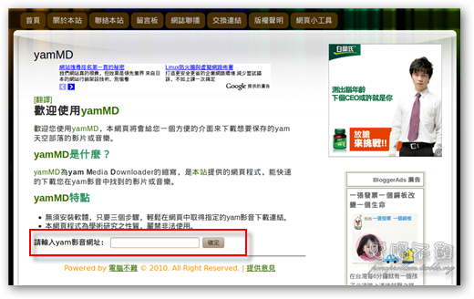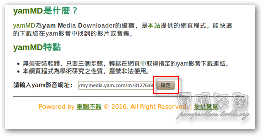 - 無須安裝軟體,只要三個步驟,輕鬆在網頁中取得指定的yam影音下載連結:比起一堆多功能,需要設定路徑的軟體還要更省時間。