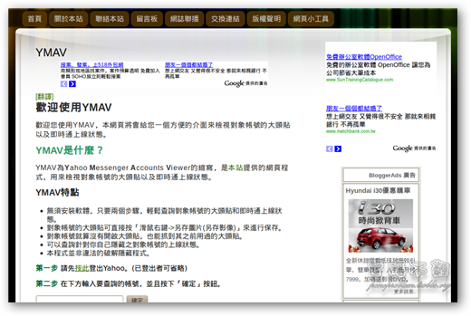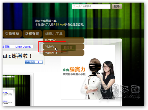 首先利用上面的連結連到本站YMAV的分頁,或是你可以在本站頁面上方的分頁選單找到「網頁小工具->YMAV」。